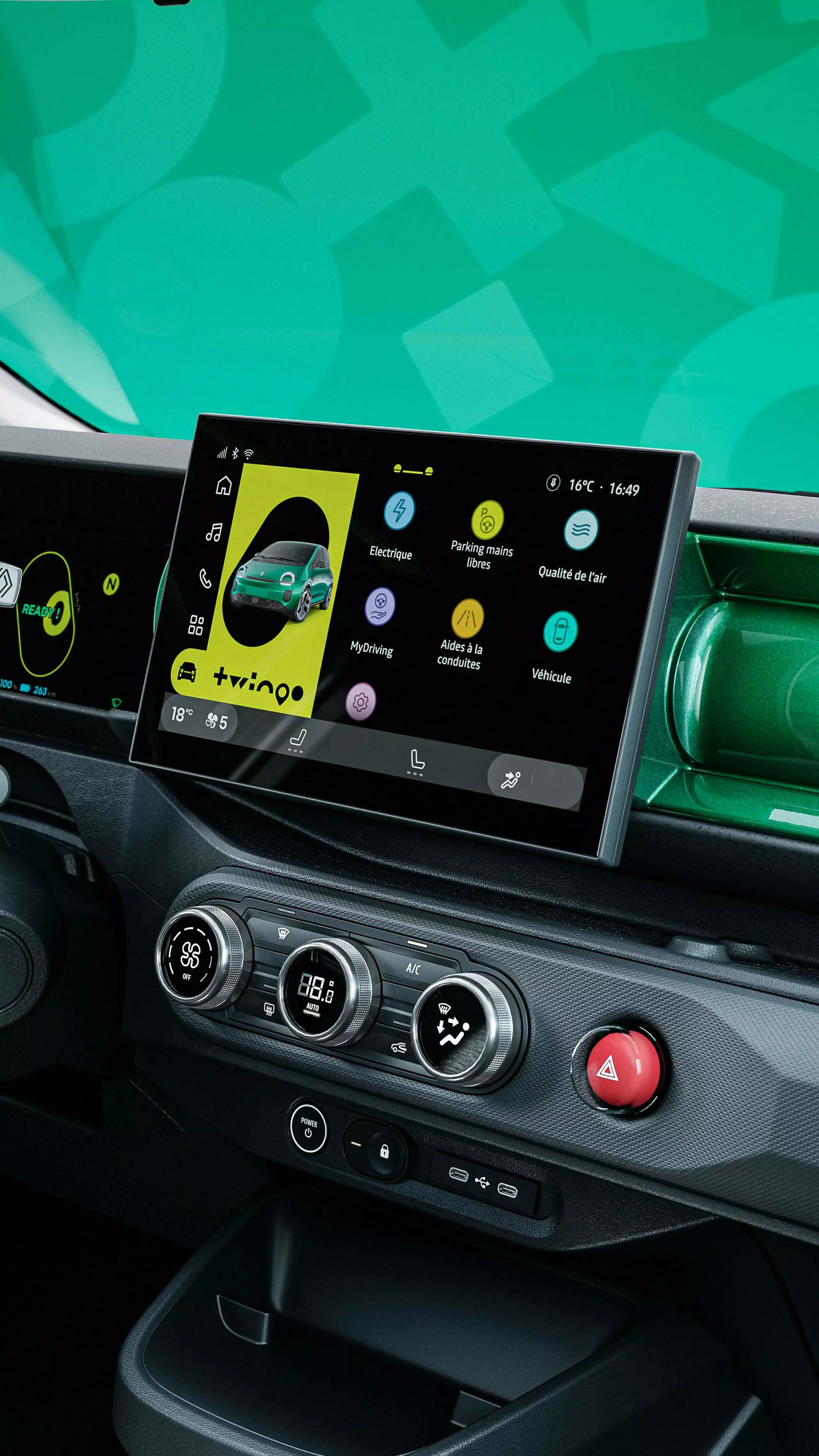Renault ofrece una amplia gama de accesorios ingeniosos y coloridos que realzan el carácter alegre del Twingo E-Tech: consola central modulable, bolsa de compra plegable, separadores de consola o reposabrazos con compartimento. Su habitáculo, con detalles gráficos exclusivos, refuerza la personalidad divertida y única de este modelo urbano.